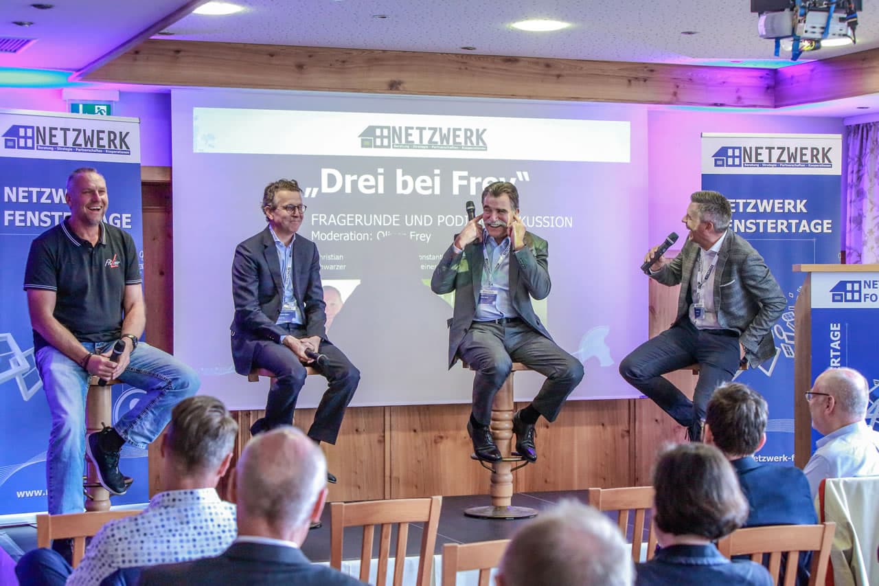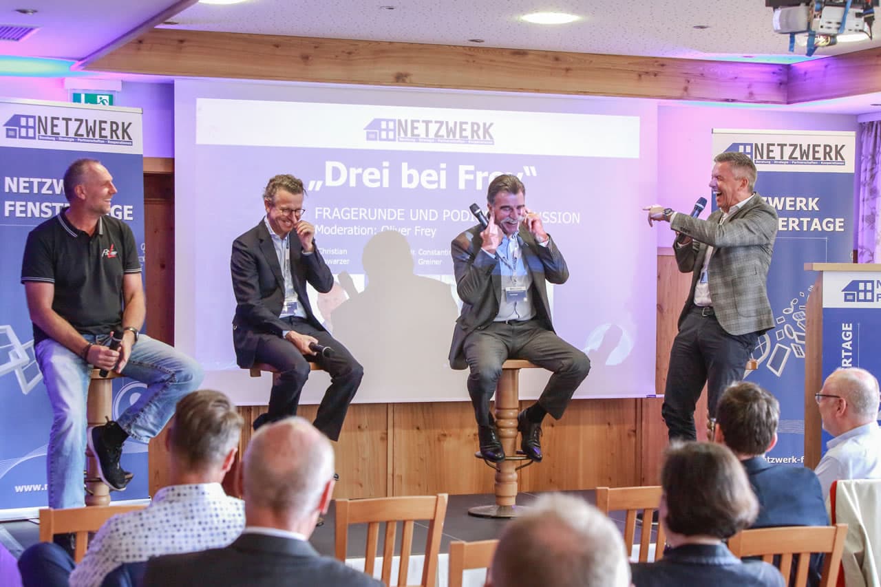 Bei dem abschließenden beliebten Talk „3 bei Frey“ waren alle Referenten bester Laune und konnten nochmals positive Energien bei allen im Auditorium freisetzen. Das Lachen kam nicht zu kurz in der Runde und im Anschluss konnte beim abendlichen Get together mit bayerischen Spezialitäten der Ausklang zu den diesjährigen Fenstertagen mit vielen Fachgesprächen im Happinger Hof begangen werden.